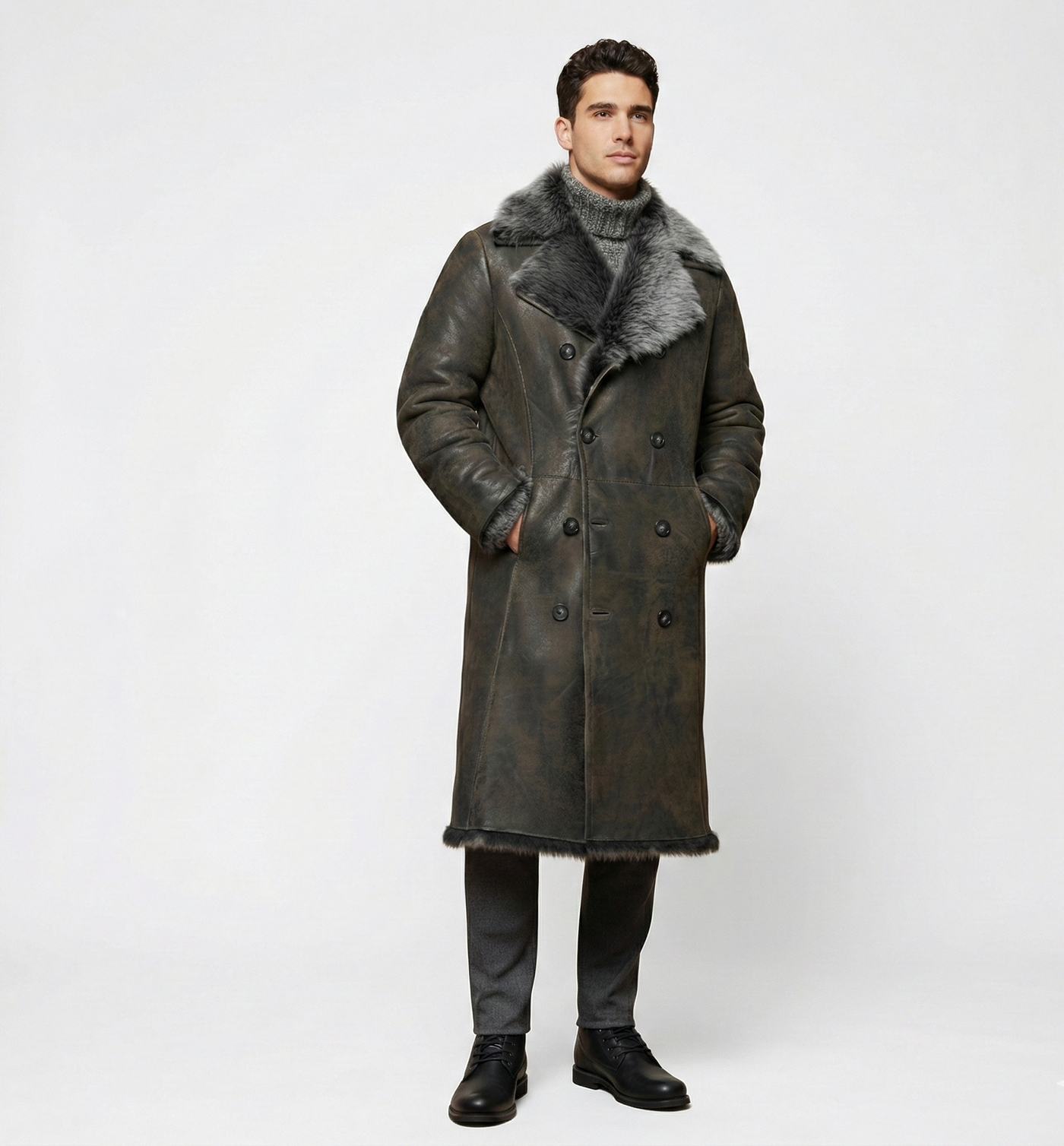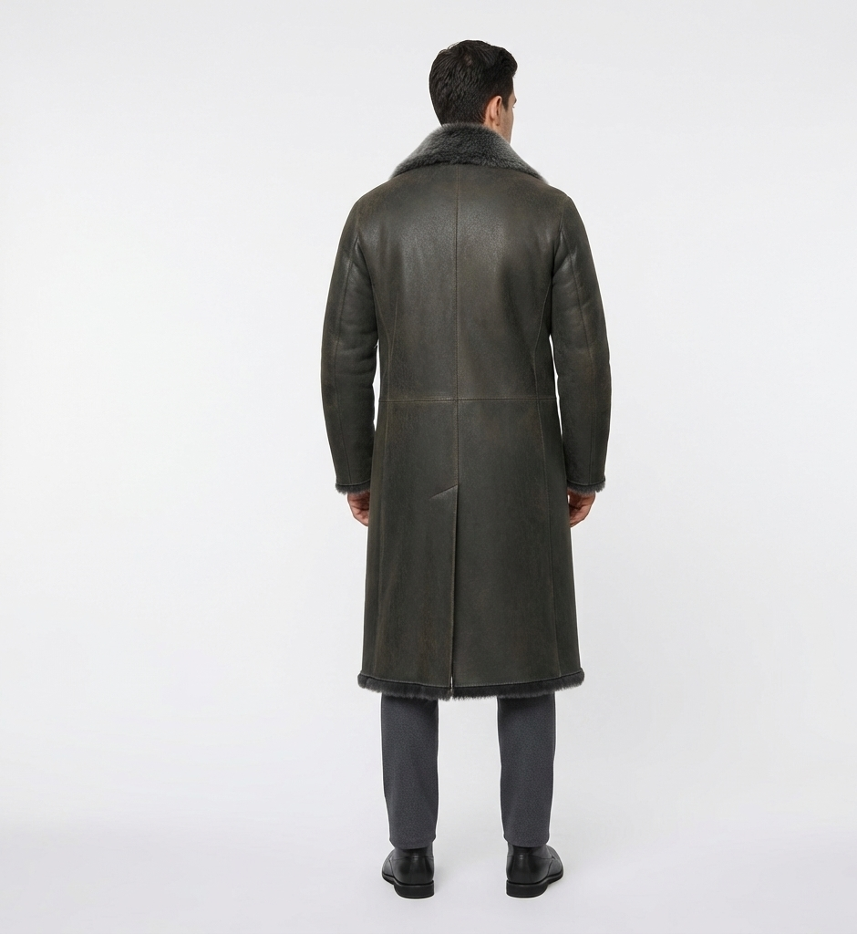 Men’s Long Shearling Coat with Plush Collar Winter Coat