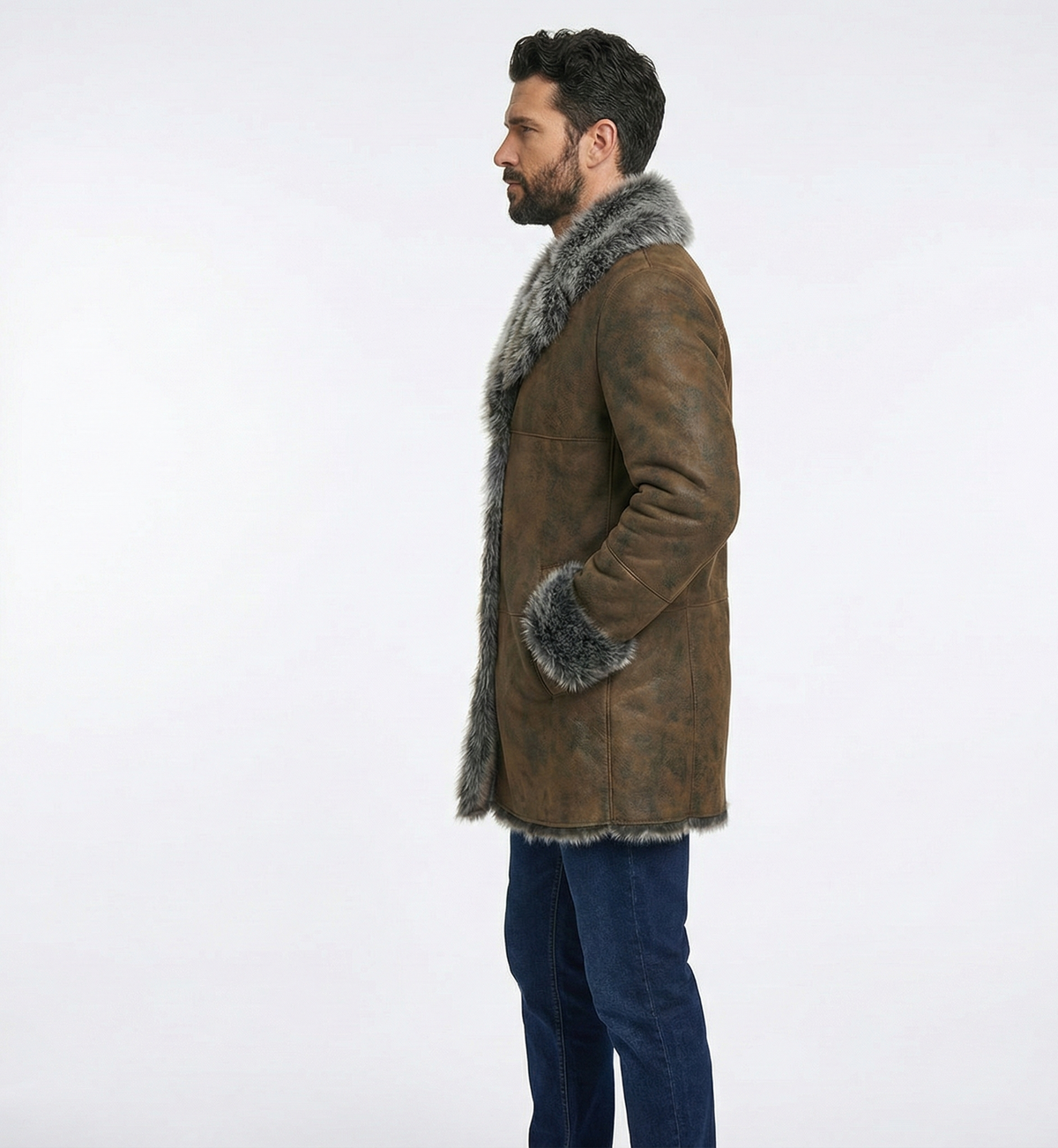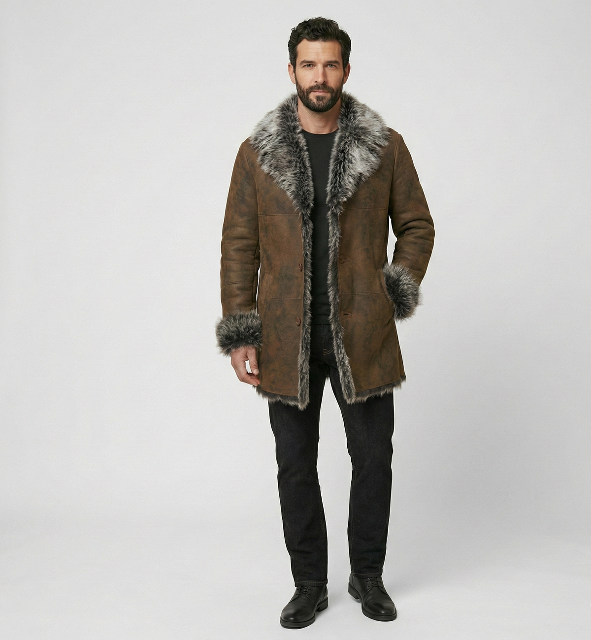 Men’s Shearling Fur Collar Coat – Premium Luxury Winter Jacket