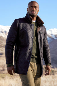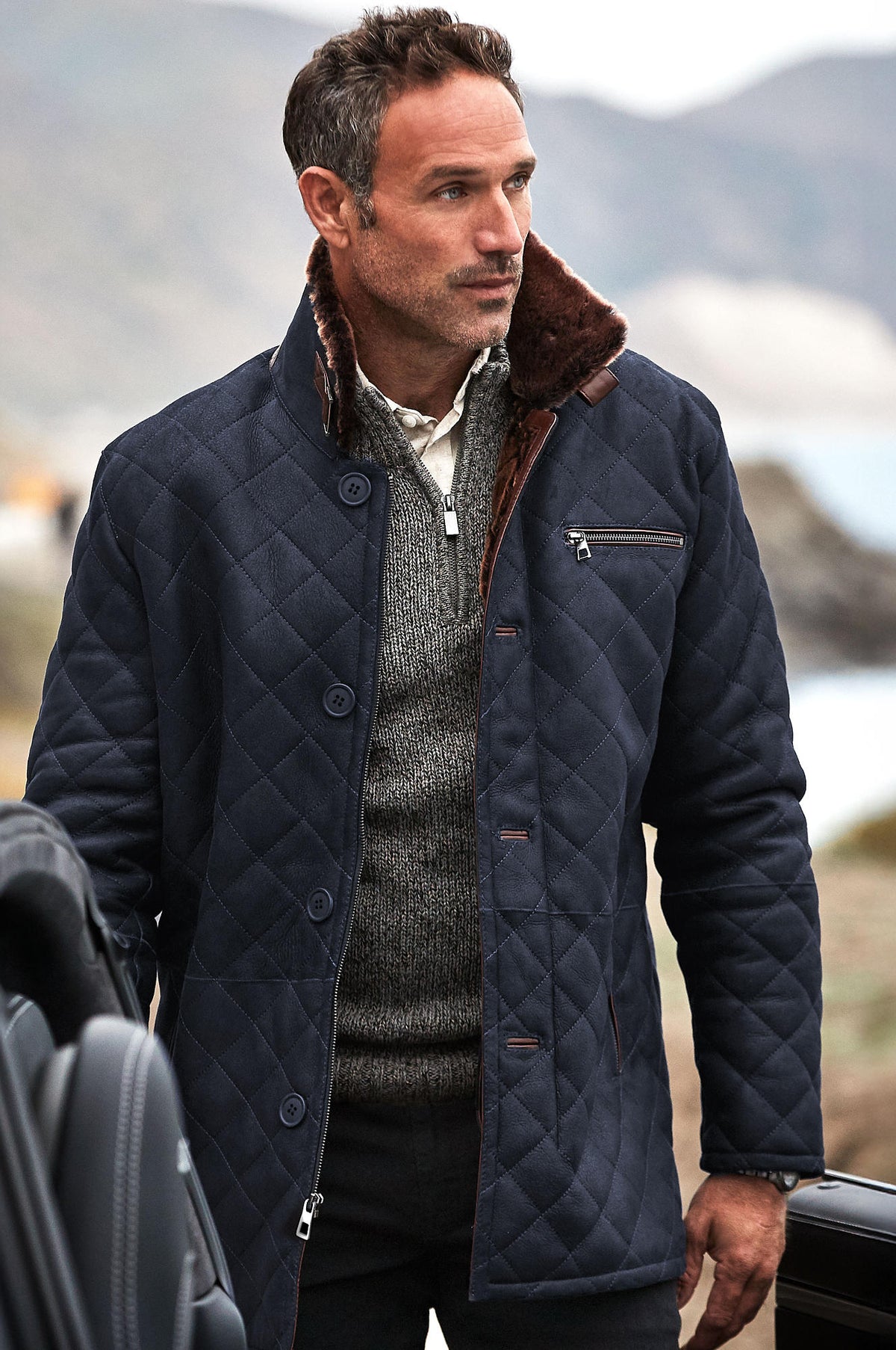 Men's Winter Sheepskin Fur Collar Leather Coats [Navy]