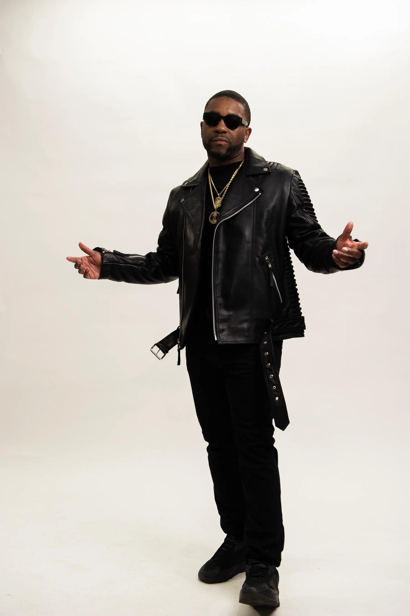 Men's Trey Biker Over-sized Leather Jacket [Black] - XS