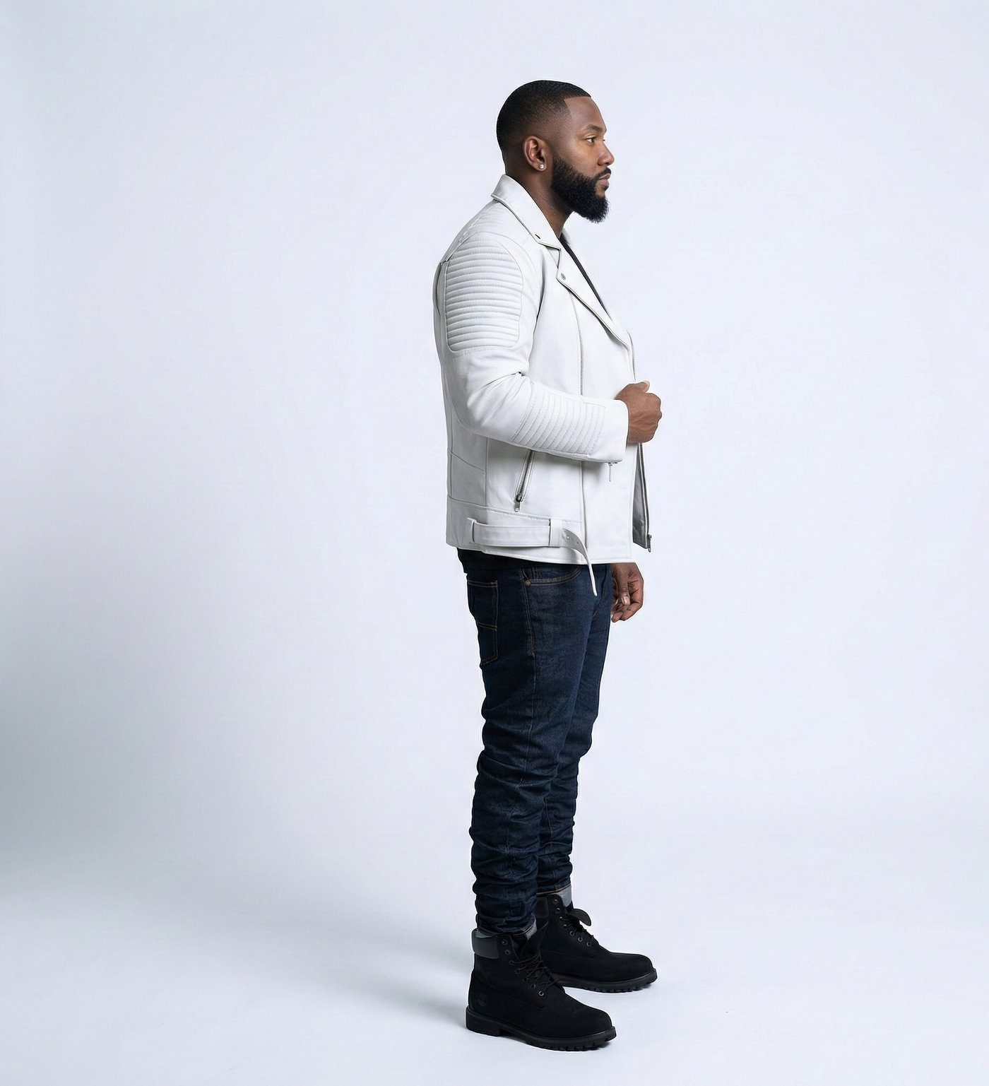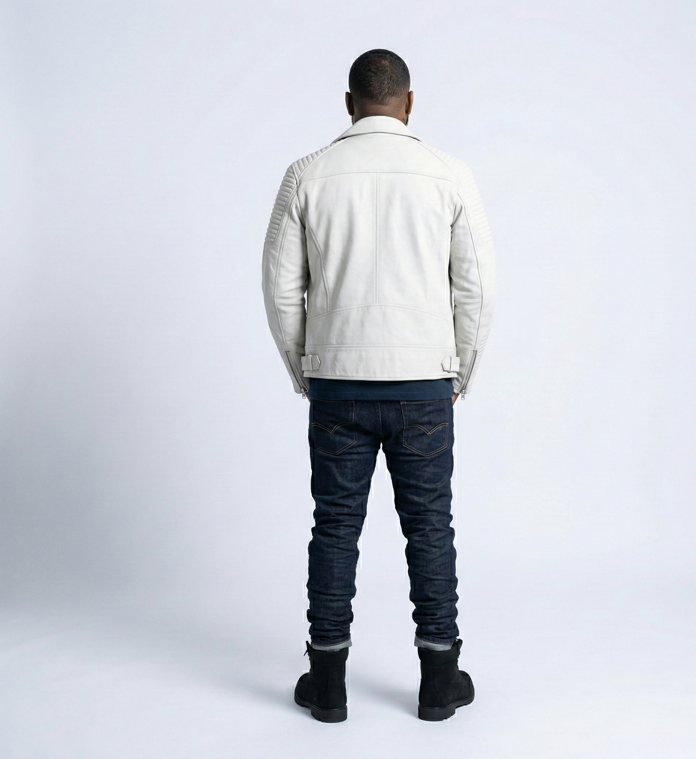 White Leather Motorcycle Jacket for Men