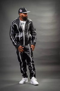 Men's Black/White Genuine Leather Tracksuit | Sweat Suit