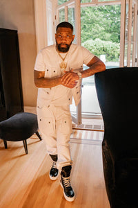 Men's Leather Tactical Vest With Leather Cargo Pants White [Slim-Cut]
