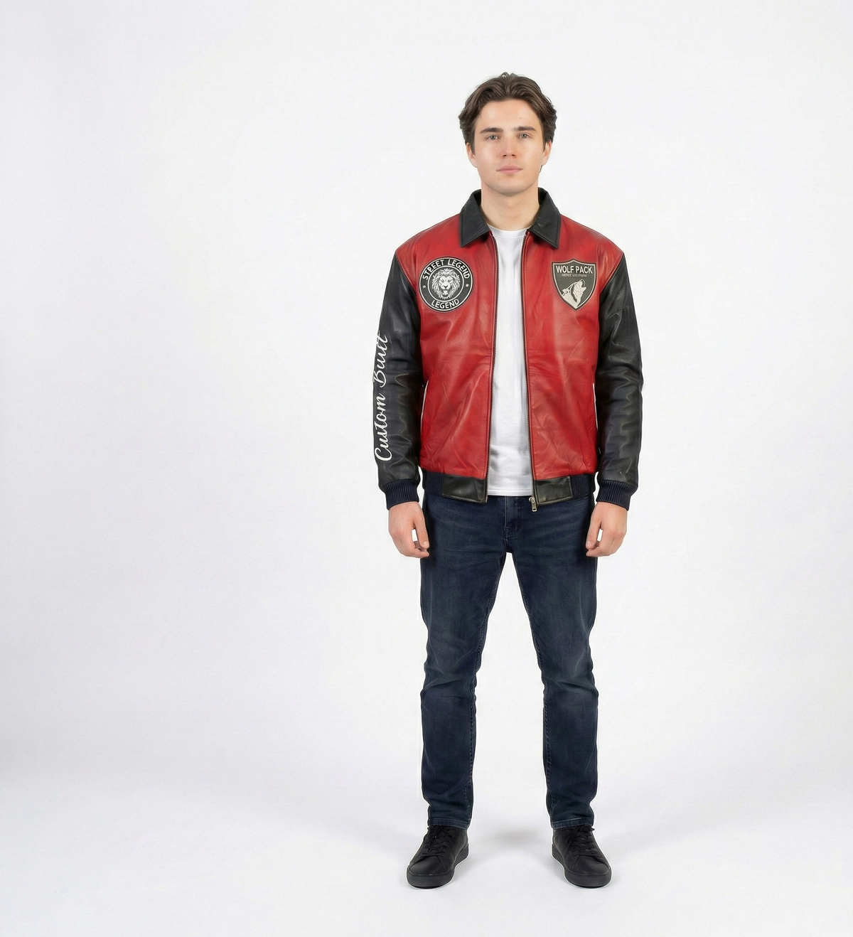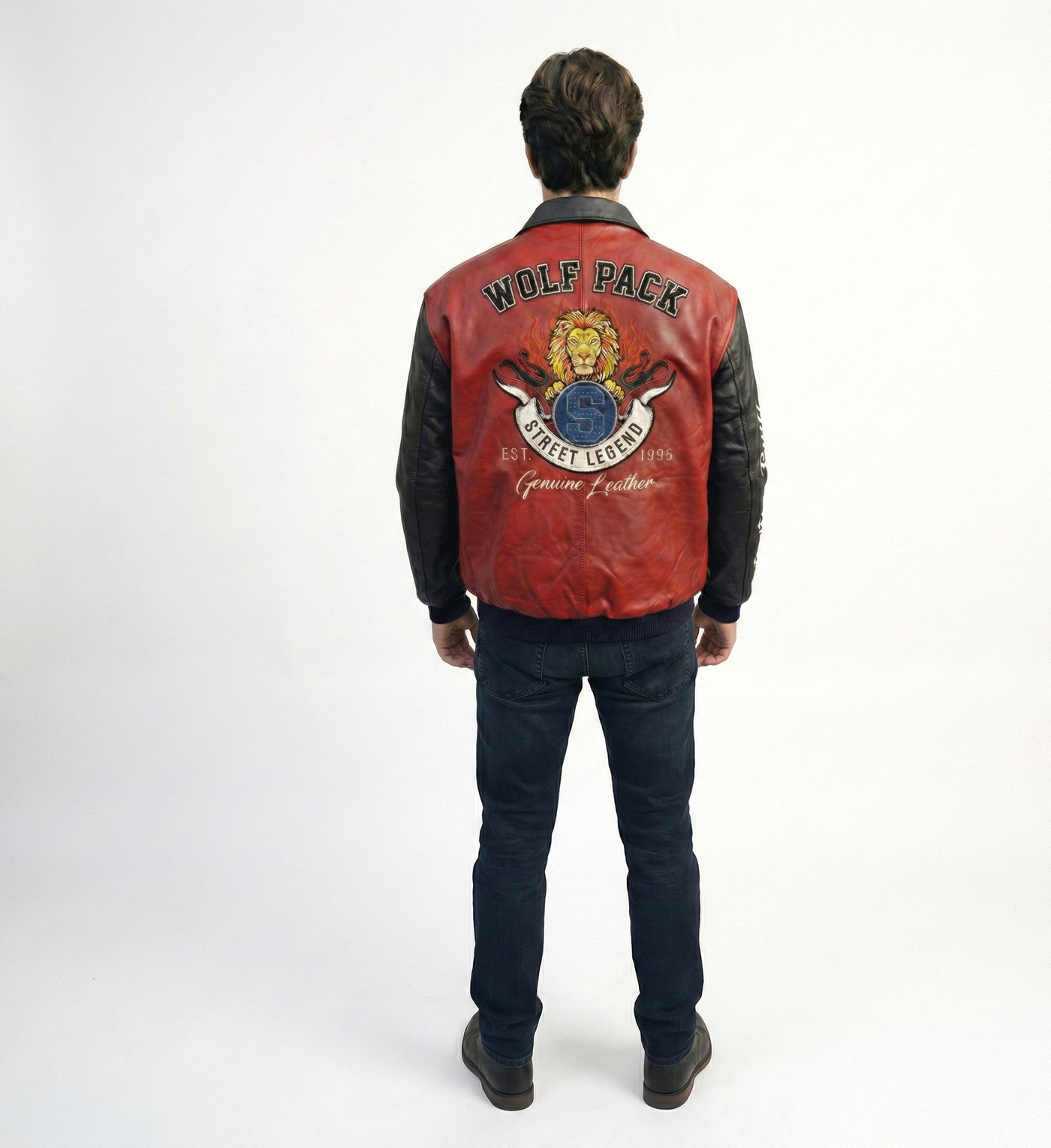 Men’s Red & Black Varsity Leather Jacket – Wolf Pack Streetwear