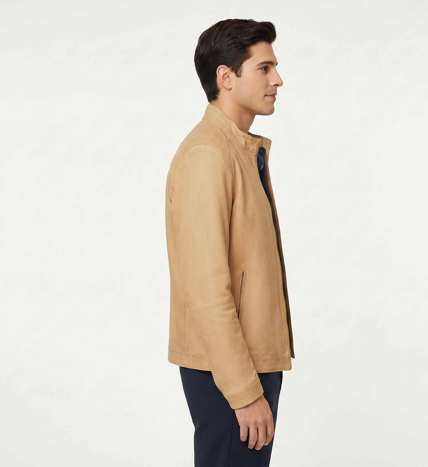 The slim, tailored silhouette layers easily over tees, polos, or lightweight knits, while the full-zip front adds practicality and comfort. A timeless wardrobe essential, this jacket transitions seamlessly from day to night and season to season.
