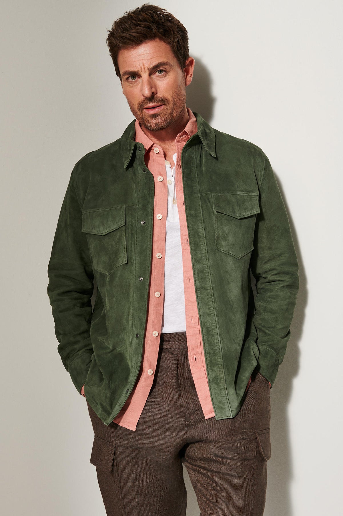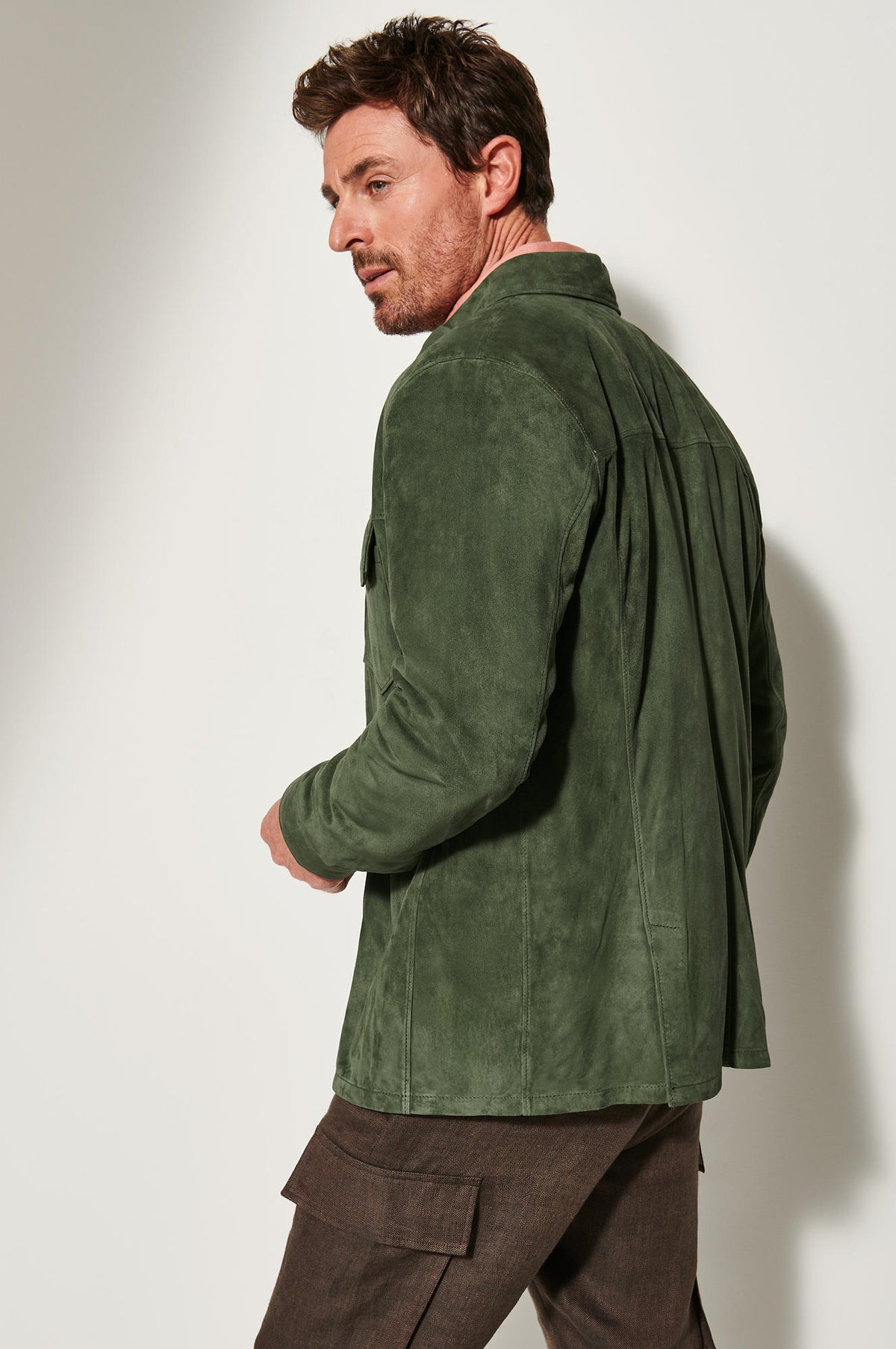 Men's Light Weight Leather Jacket Double Pocket [Olive]