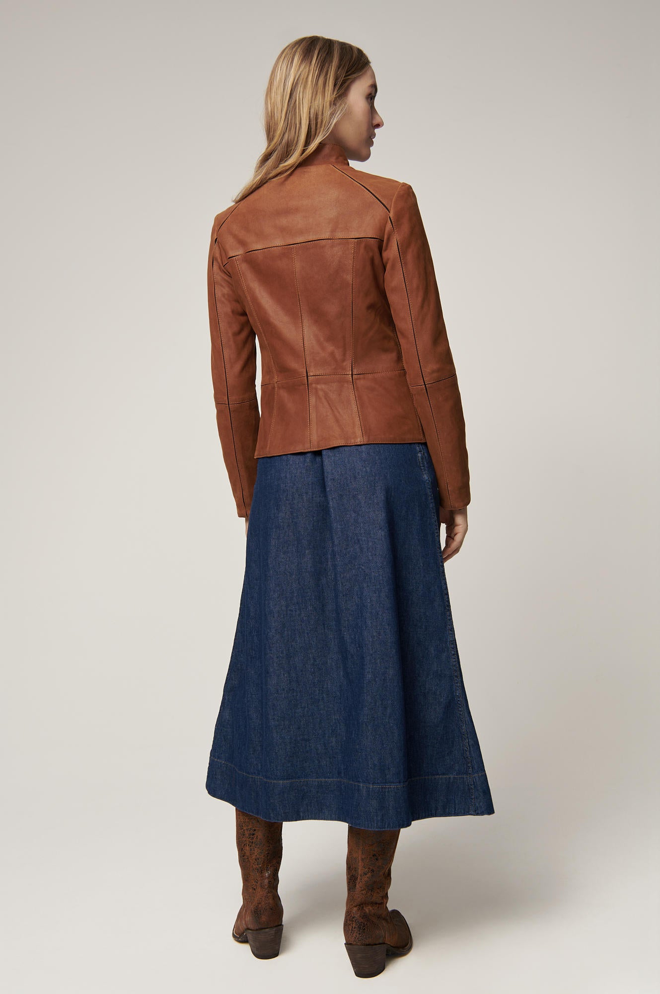 Women's Real Leather Stylish Zip-up Jacket [Brown]