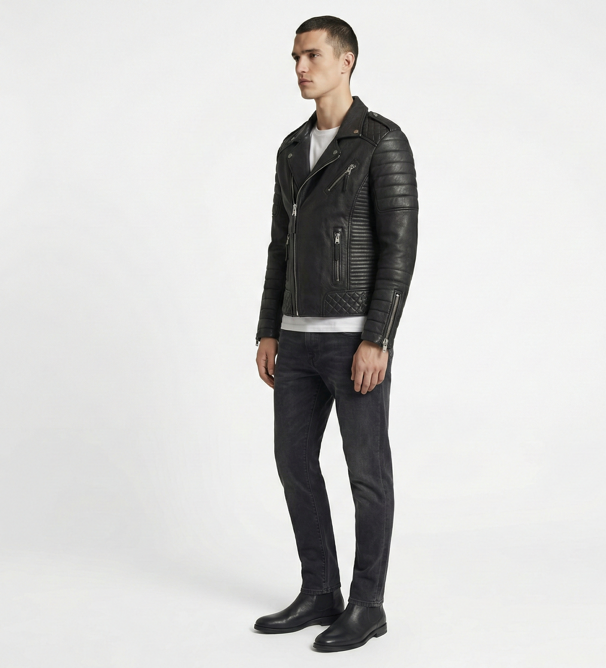 Men’s Black Leather Biker Jacket – Slim Moto Fit