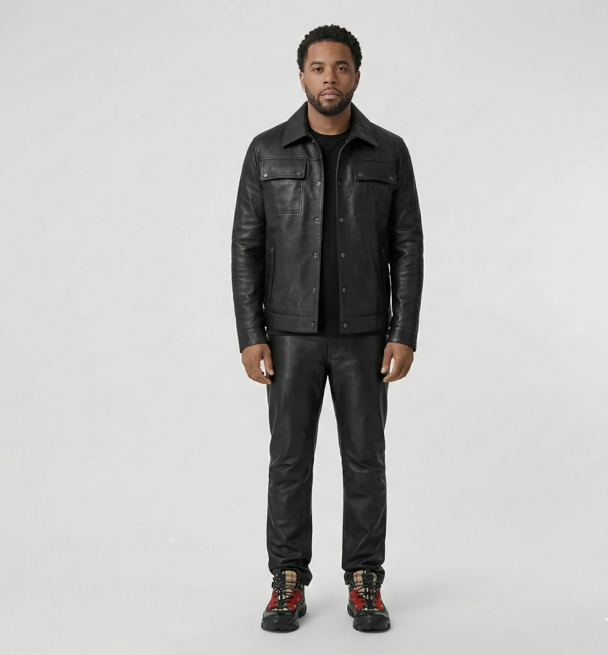 men’s black leather jacket and pants set, designed for a clean, confident look that works day or night. This two-piece outfit combines modern streetwear energy with timeless leather appeal, making it a must-have for men who want to stand out without trying too hard.
