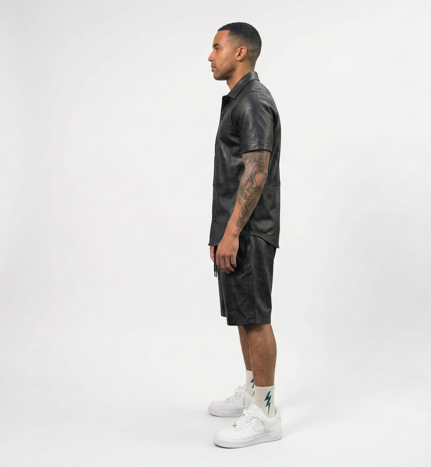 Pair with a matching faux leather shirt or jacket for a coordinated luxury set, or style with a white tee and sneakers for a sharp, minimalist streetwear look.
