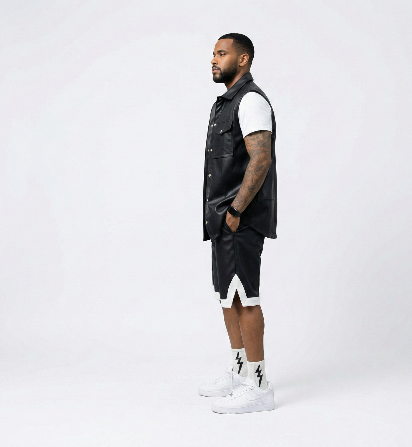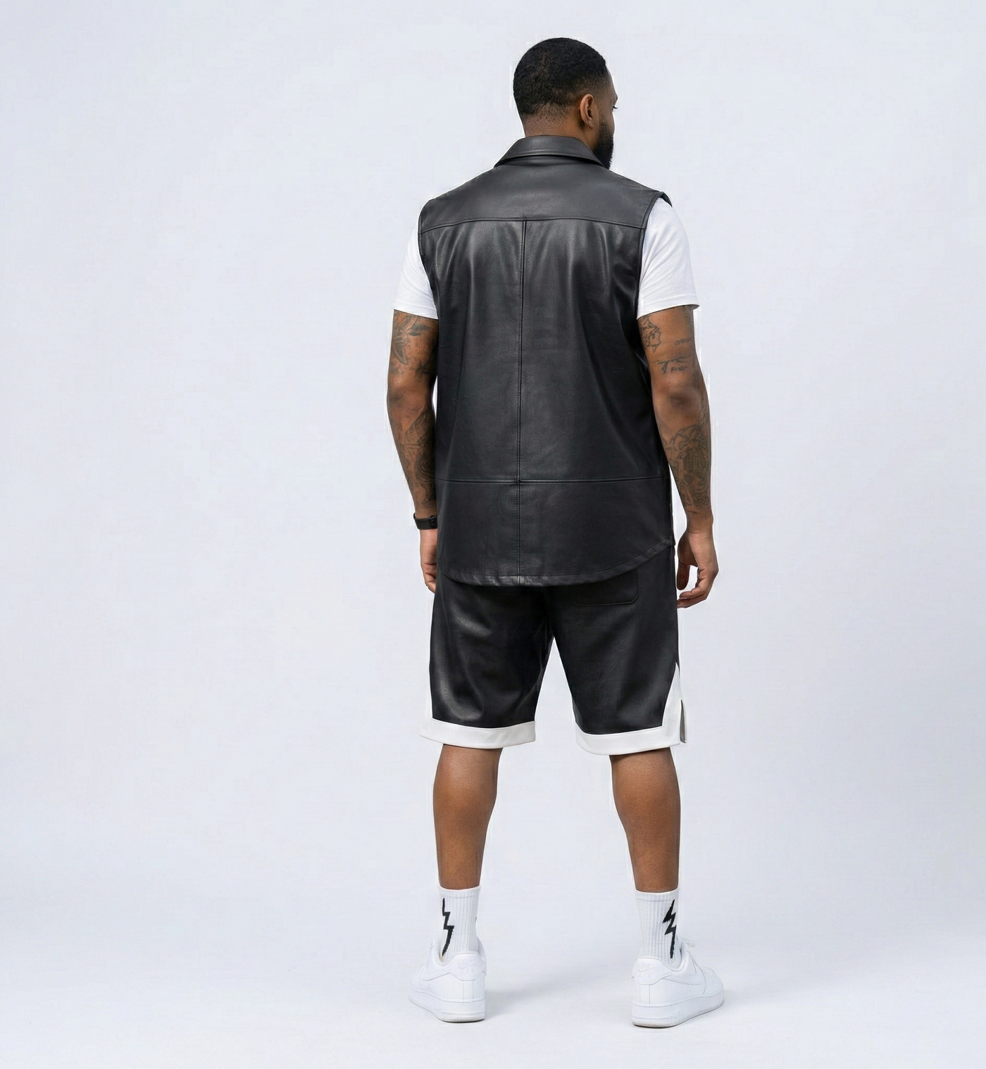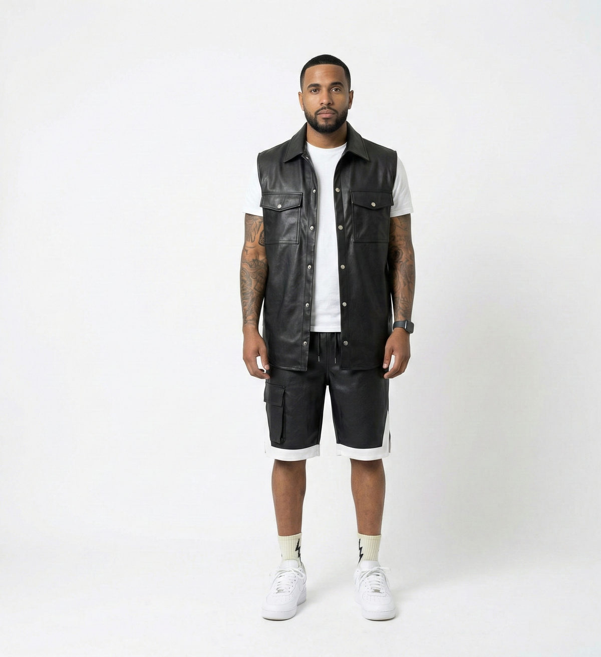 Men’s Black & White Genuine Leather Checkerboard Jacket Set