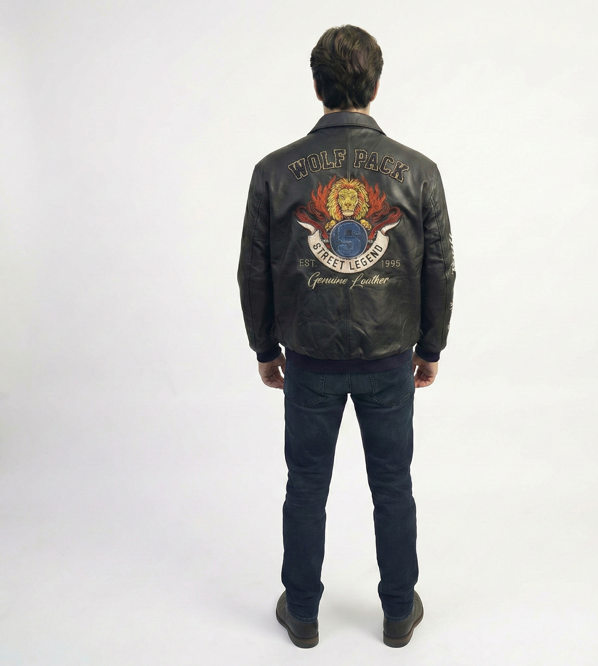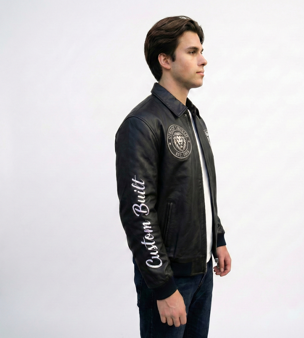 Elevate your everyday wardrobe with this men’s black varsity leather jacket, designed for timeless style and modern streetwear appeal. Featuring a sleek all-black design with embroidered patches, this jacket delivers a clean, bold look that never goes out of fashion.