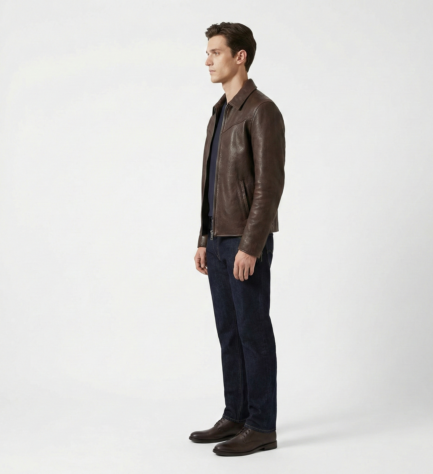 Elevate your everyday wardrobe with this men’s brown leather jacket, designed for effortless sophistication and timeless versatility. Crafted from premium genuine leather, this jacket features a clean zip-front silhouette with subtle seam detailing for a refined, modern look