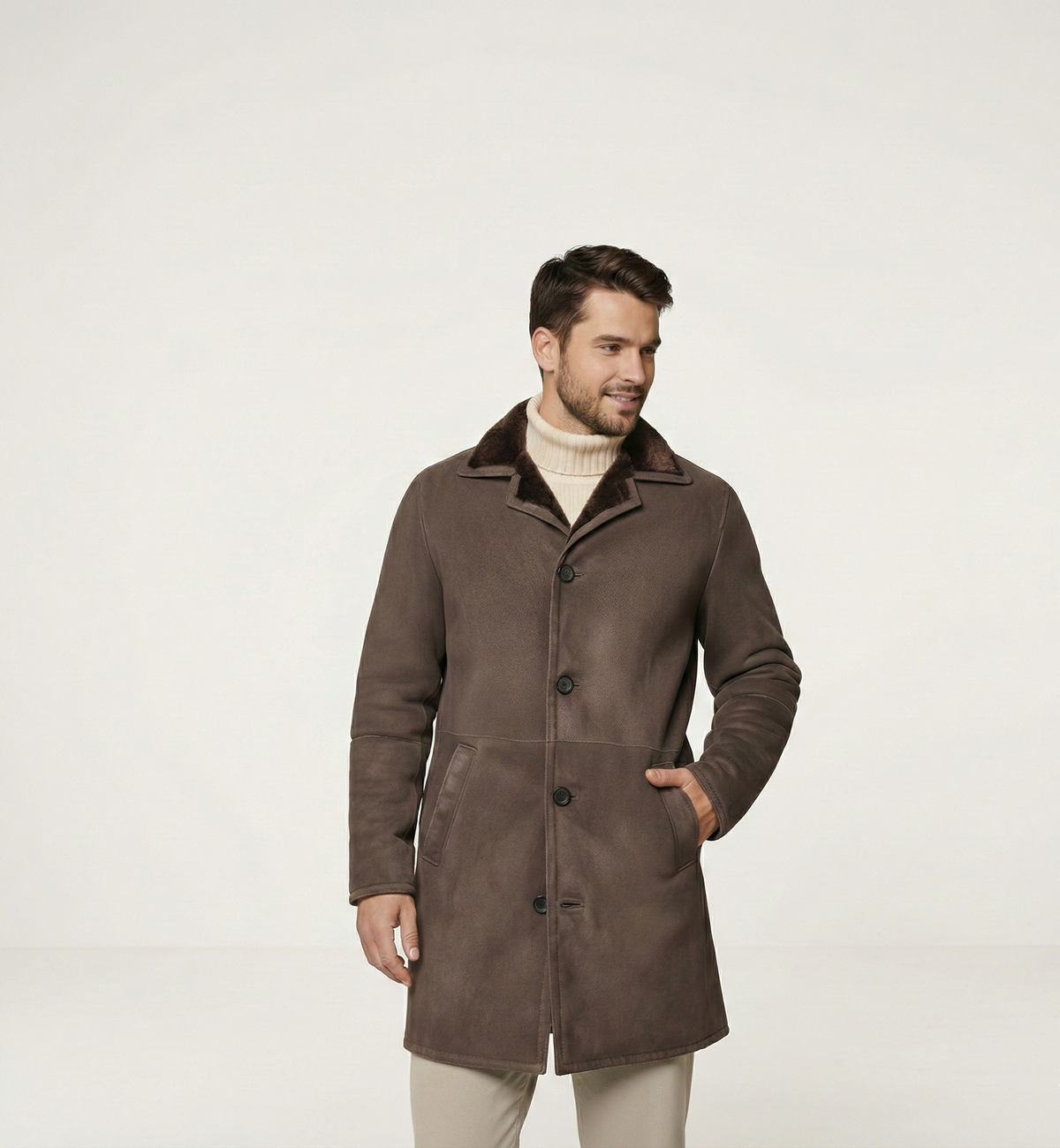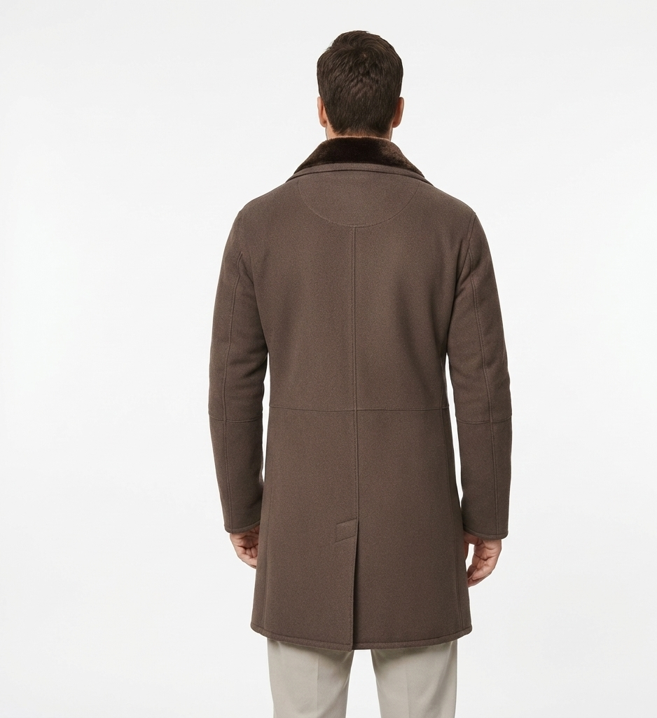 Men’s Button-Front Suede Winter Coat with Shearling Collar