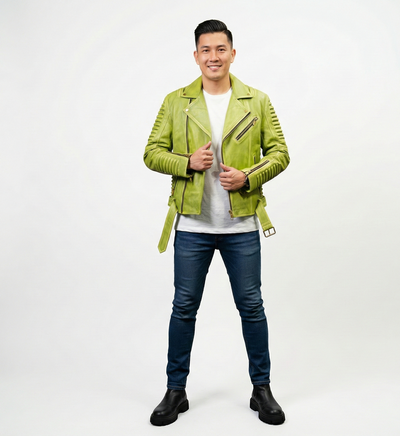 Men’s Green Leather Biker Jacket, a bold fusion of classic moto styling and modern color-forward fashion. Crafted from premium genuine leather, this jacket features a vibrant green finish that delivers confidence, individuality, and standout street appeal.