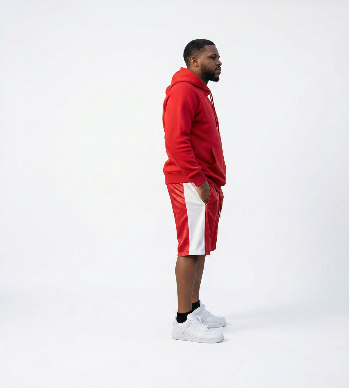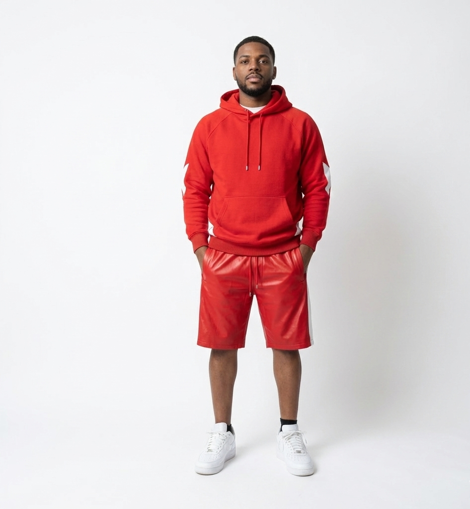 Pair these shorts with the matching hoodie or a clean white tee and sneakers for a sharp, confident streetwear look that stands out effortlessly.