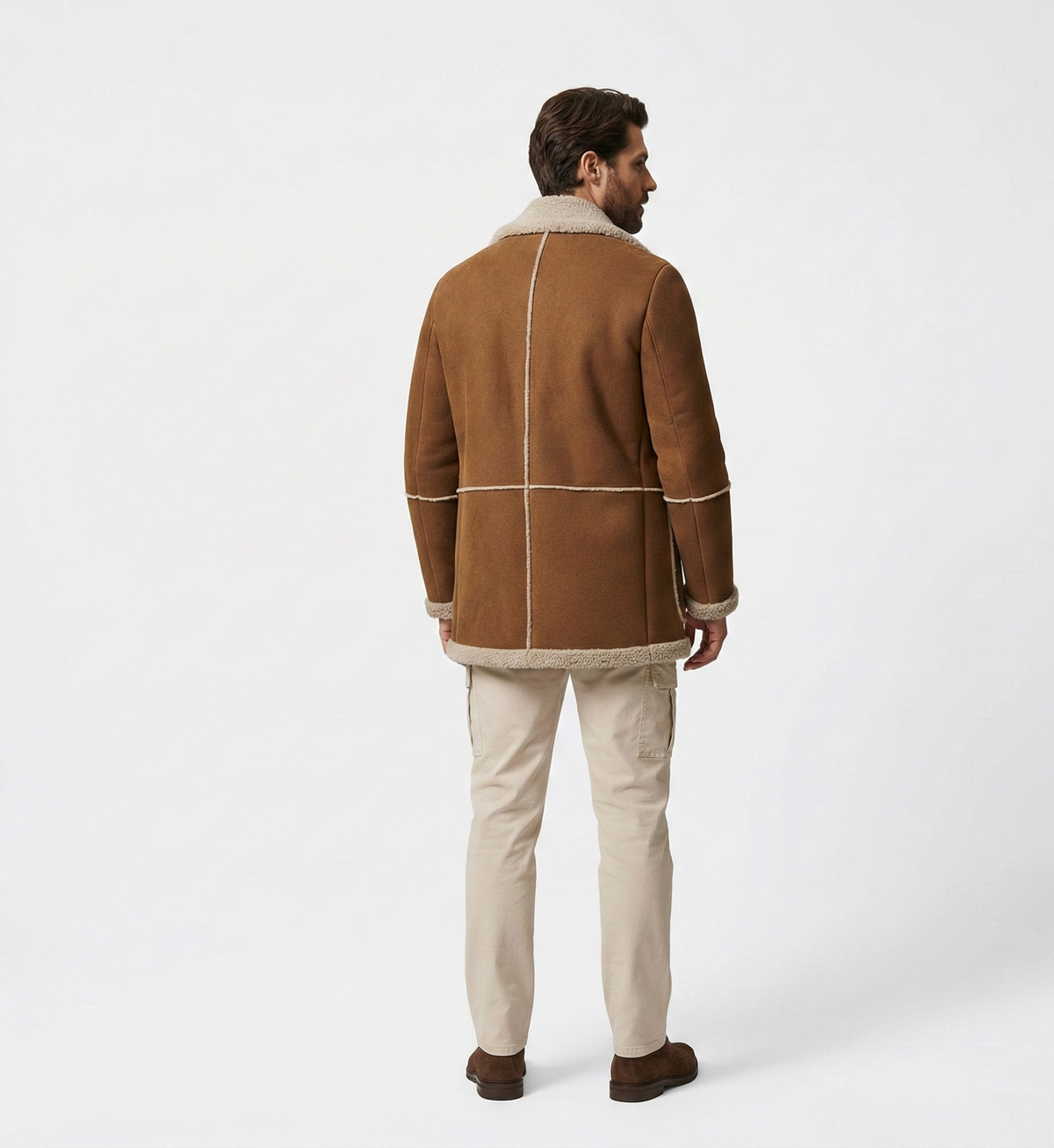 Men’s Shearling-Lined Suede Jacket – Classic Winter Warmth Coat