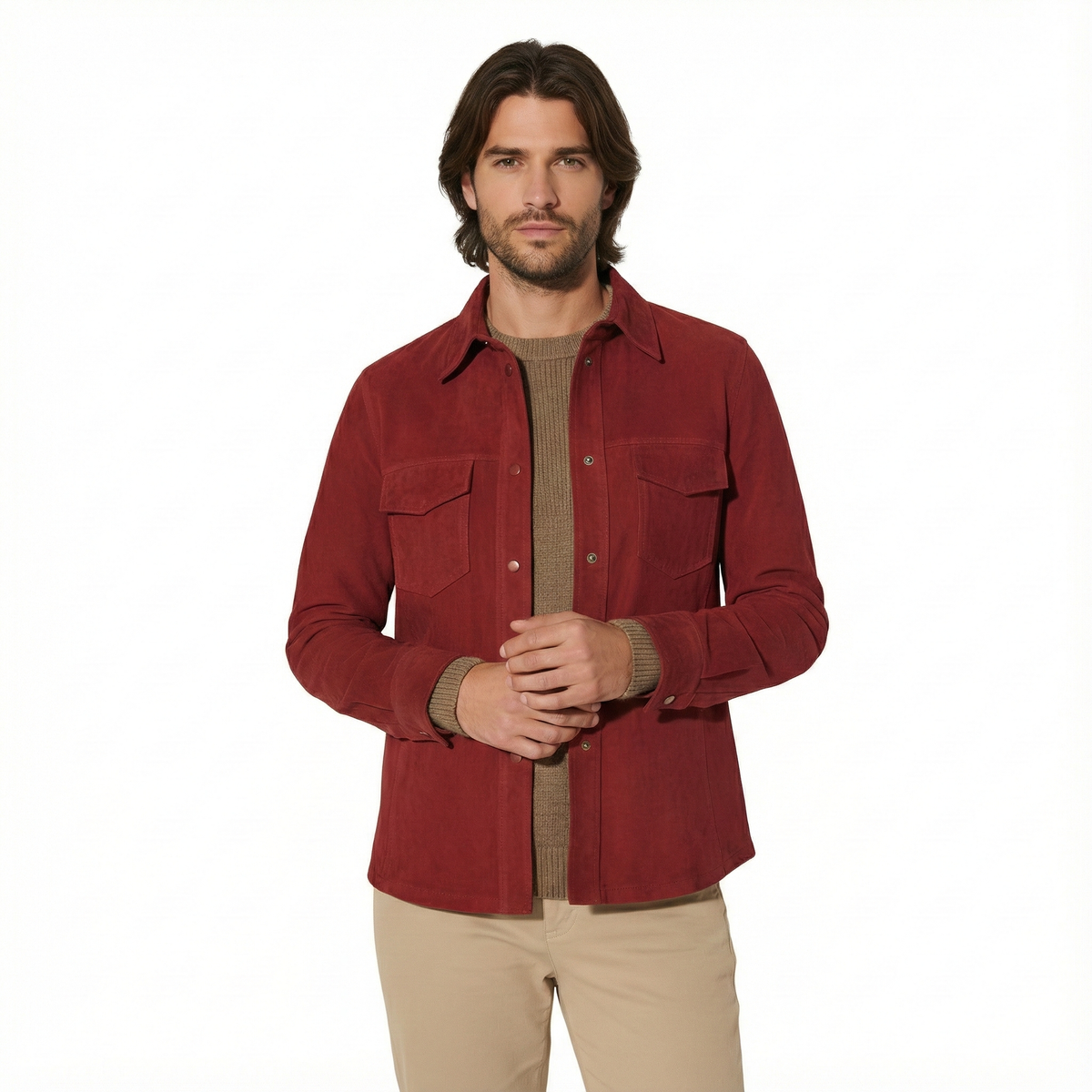 Upgrade your everyday style with this men’s suede shirt jacket, designed for effortless layering and refined casual wear. Crafted with a soft suede finish, this versatile piece blends the structure of a jacket with the comfort of a shirt, making it ideal for transitional seasons.