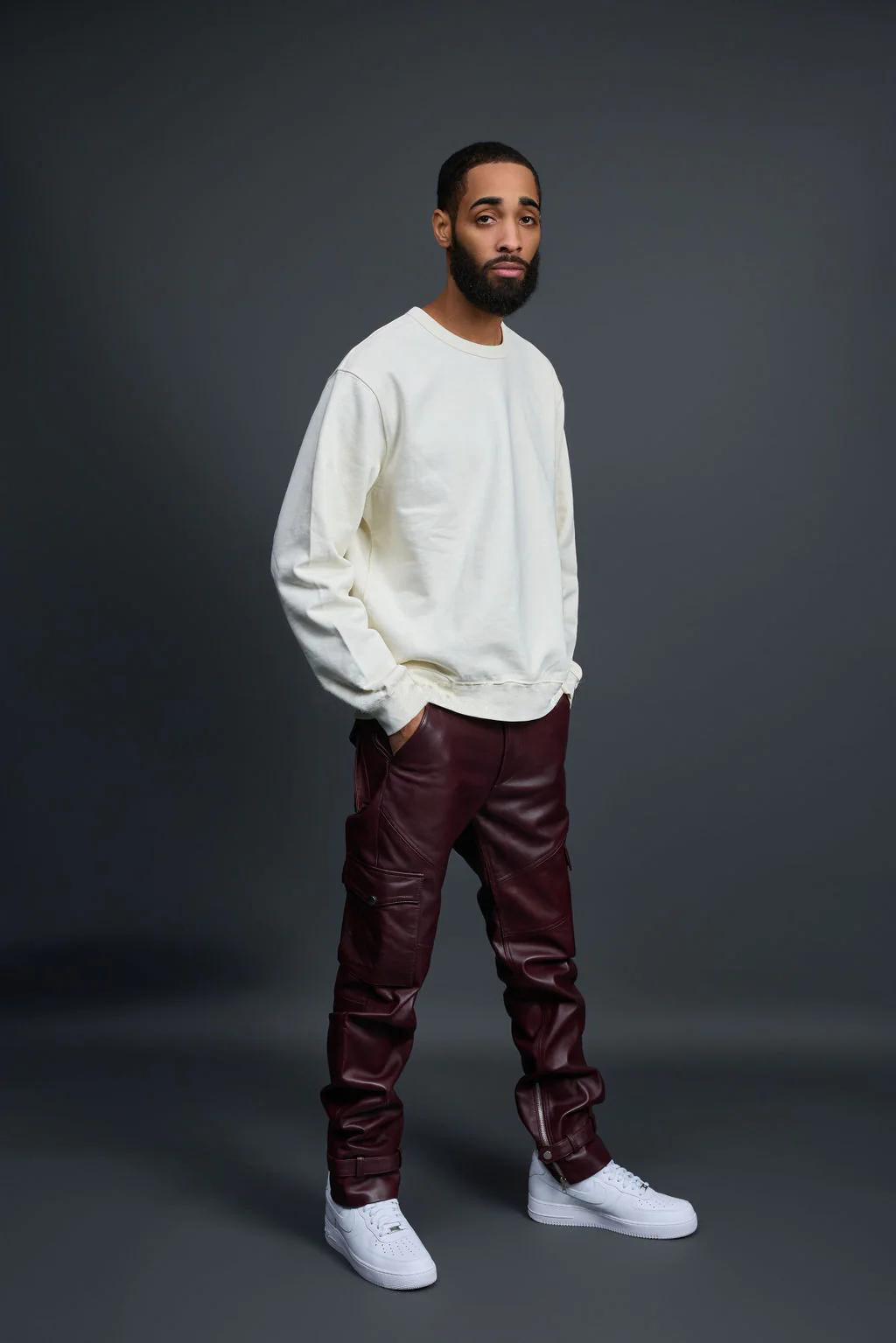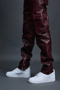 Men's Leather Stack Jean Pants [Maroon] - XS