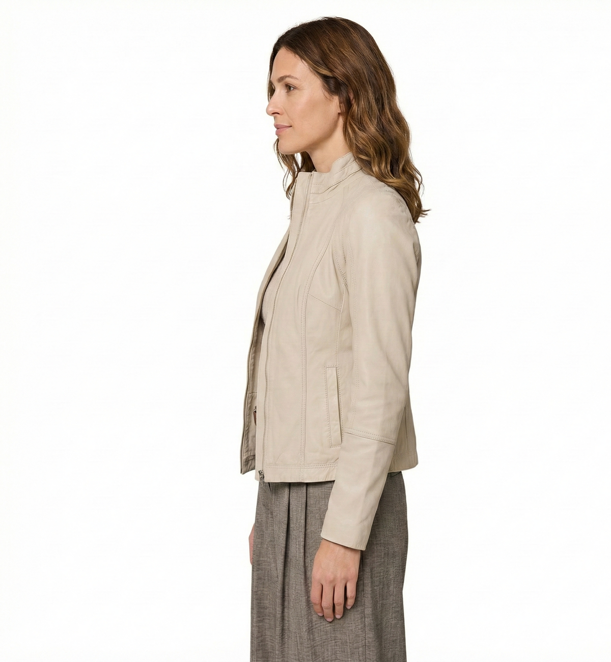 Effortlessly elegant and endlessly versatile, this women’s beige leather jacket is a refined essential for modern wardrobes. Crafted from premium genuine leather, it features a clean.