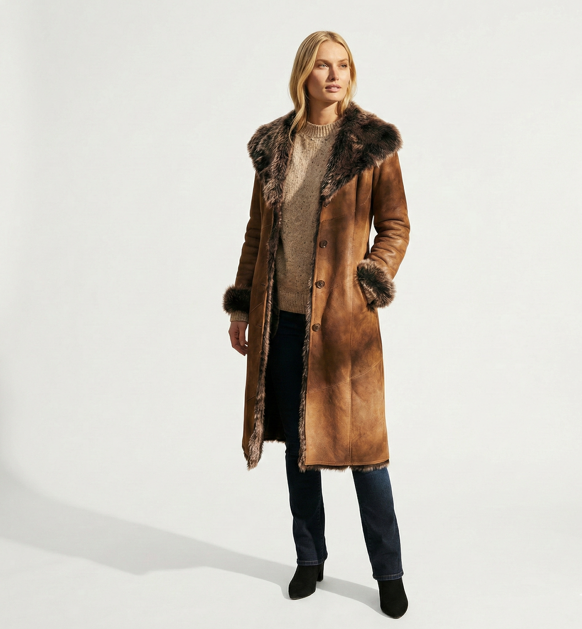 Soft fake shearling collar, inner trim, and cuffs