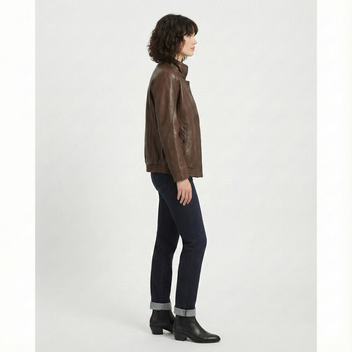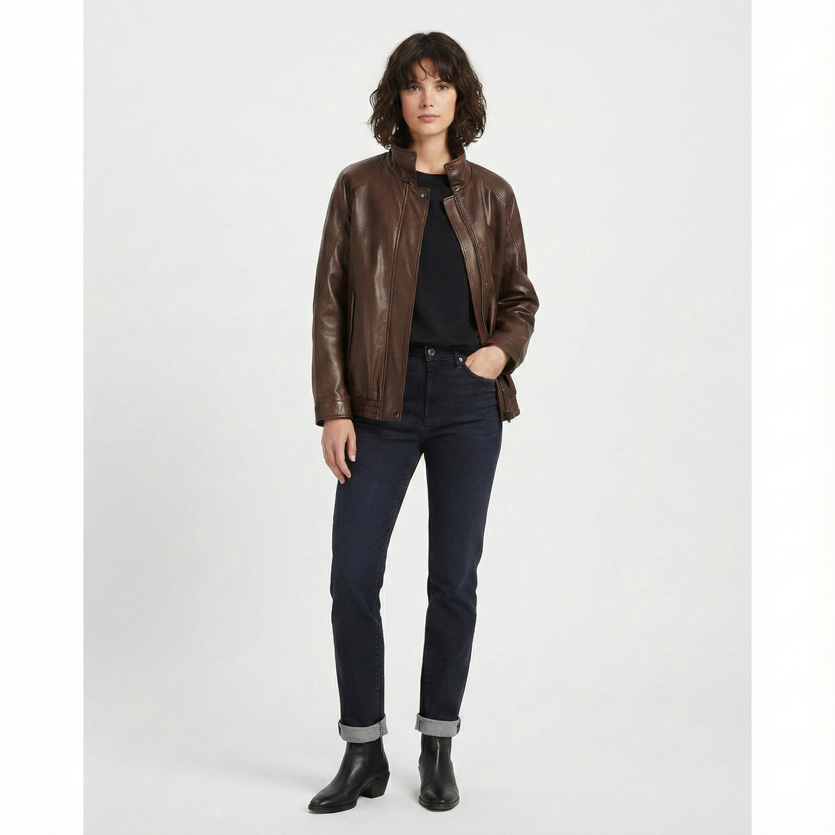 Effortlessly timeless with a modern edge, this women’s brown leather jacket is a versatile essential for everyday wear. Crafted from premium genuine leather, it features a relaxed yet flattering silhouette, smooth seam detailing, and a classic stand collar for a clean, understated look.