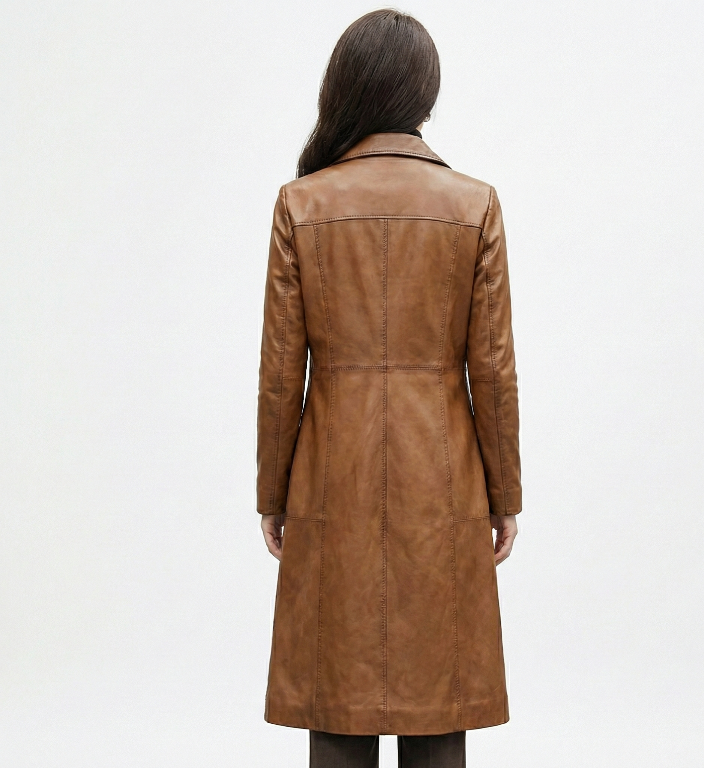 Women’s Real Leather Long Jacket – Stylish Brown Winter Coat