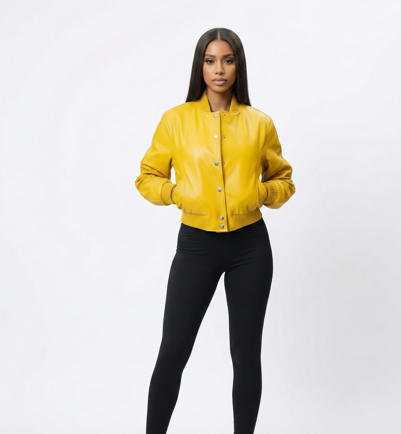 Make a bold statement with our Classic Yellow Bomber Jacket, designed to elevate everyday outfits with effortless edge. Crafted from premium fake leather with a smooth matte finish, this jacket blends timeless bomber styling with a modern, tailored silhouette.